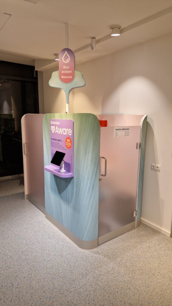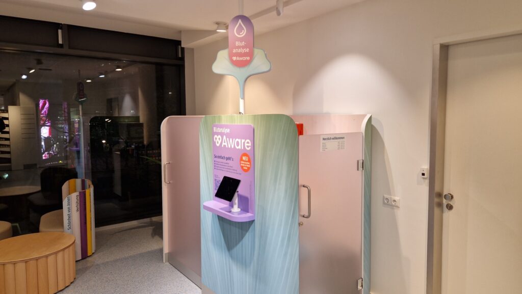 Der zweite Partner, Aware Health mit Sitz in Berlin, ist ein Healthtech-Start-up, das sich auf Bluttests mit App-basierter Auswertung spezialisiert hat. Bei dm betreibt Aware aktuell in Karlsruhe und Berlin Blutabnahme-Stationen; weitere Standorte sind in Planung.